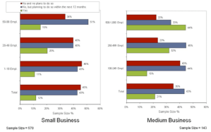 Our recently published SMB Group market study, “2010 Small and Medium Business Mobile Solutions Study,” reveals that SMBs understand the importance of mobile friendly websites and plan to invest in a mobile web presence in order to help fuel their growth. In the very small businesses (1-19 employees) segment, only 11% have some mobile web presence, while in companies with more than 500 employees, 44% have created a mobile-friendly site.