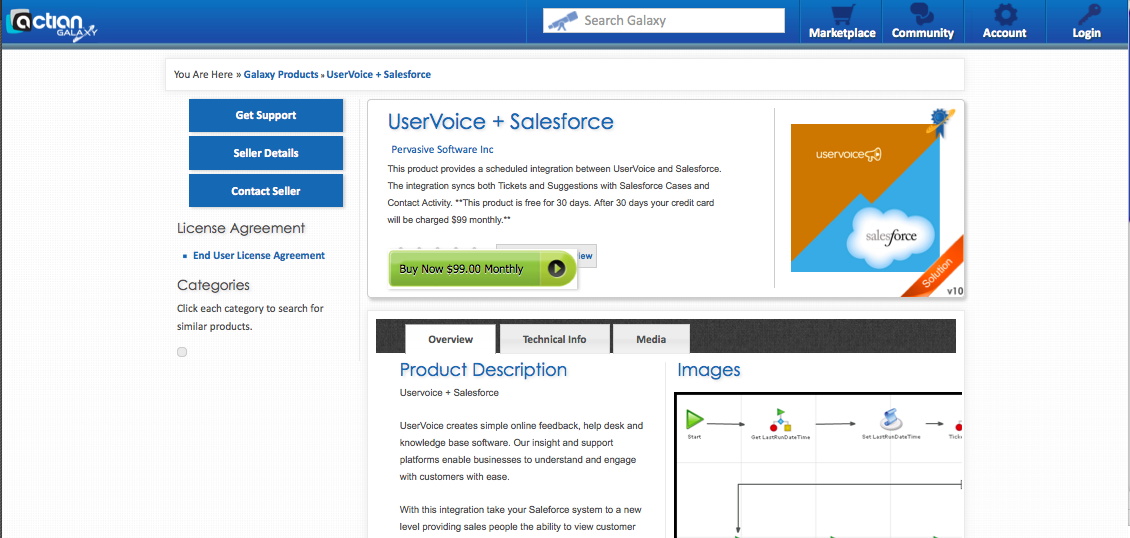 In 2011, Pervasive also introduced Galaxy Integration Marketplace, a portal where users can find integration guidance and buy pre-built integration solutions in Amazon-like fashion. On the flip side, the portal gives integration developers a window into what integrations people are looking for, as well as a lot of very handy tools–including a storefront–to provision and manage products, subscriptions, payment processing, etc.
