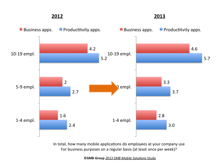 SMBs are taking to mobile solutions like ducks take to water, as revealed in SMB Group’s 2013 SMB Mobile Solutions Study, and as I discussed in 2013 SMB Mobile Attitudes and Challenges. In fact, I’m hard-pressed to think of any other technology area that has enjoyed such a meteoric rise.