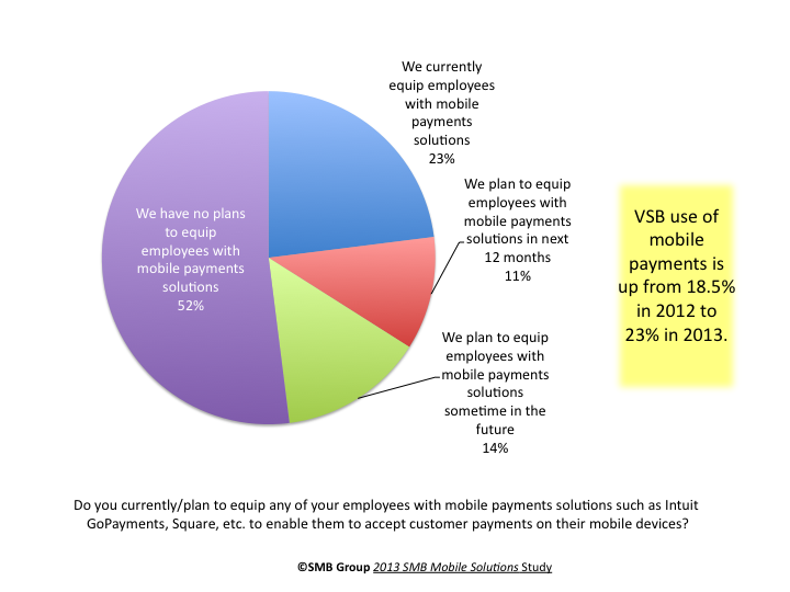Of course, the bottom line is revenues, and mobile payments solutions have proved out. Our research shows that VSBs that accept mobile payments are a whopping 87% more likely to expect their revenues to grow over the next year.