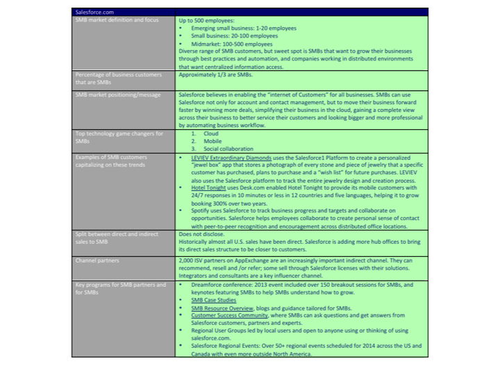 Salesforce—via its vision and strong customer proof points—has painted a vivid picture of how SMBs can use cloud, mobile and social solutions offerings for a more user-friendly, streamlined way to run their businesses.