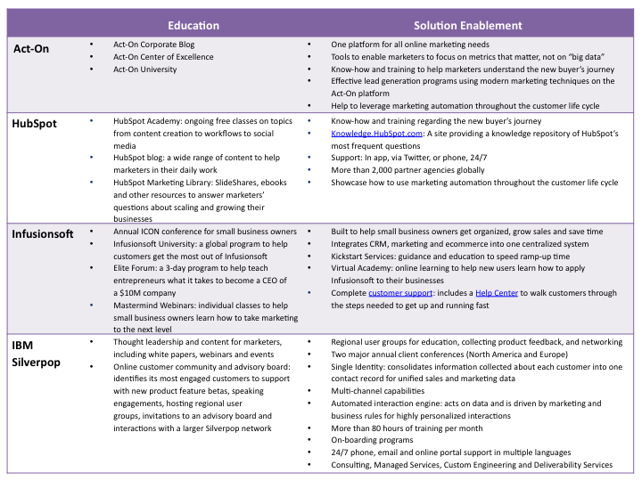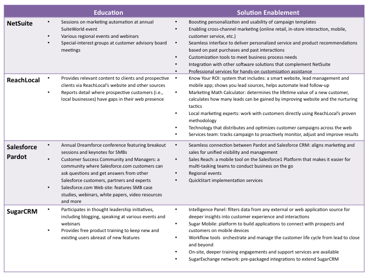 However, as part of the solution selection process, you should also consider the types of tools and services vendors offer to help SMBs get more continuous value from marketing automation. Evaluate the scope and types of tools, services and support programs that will help you get the most from the platform, and consider whether they will help you use the solution more effectively not only in the near term but also in the future as your needs evolve.