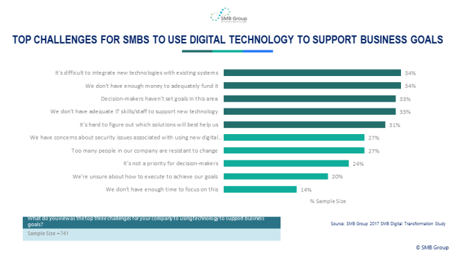PCaaS for Business is an attractive option for growing SMBs. According to SMB Group’s 2017 Digital Transformation Study, 74% of SMBs agree that using technology effectively is key to business growth. But SMBs don’t have unlimited budgets. In fact, this study also shows that lack of budget is tied for the number one spot in the ranked list of challenges that SMBs face in using technology to support their businesses (Figure 2).