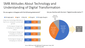 SMBs are also becoming more familiar with what digital transformation is. 57% of SMB respondents now say they’ve heard of the term and think they know what it means—up from 33% when we asked the same question in 2017.