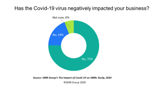 - A staggering 75% of all SMBs report that Covid-19 is negatively impacting their businesses. 19% have not experienced a negative effect to date, and 6% are not sure.