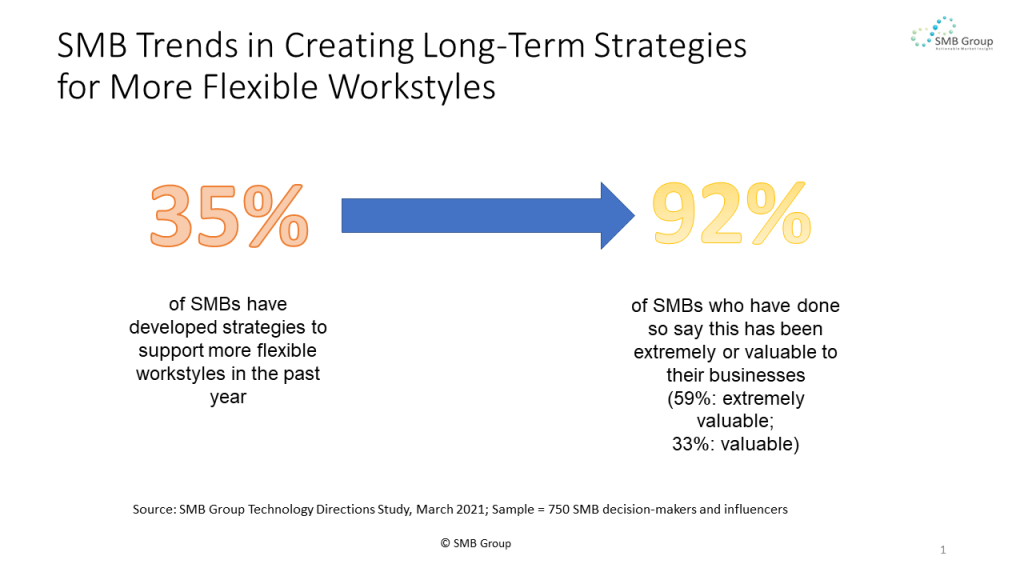 Flexibility pays off for the business as well: Among the one-third of SMBs that have already developed strategies to support more flexible workstyles, 92% say that it has provided business value.