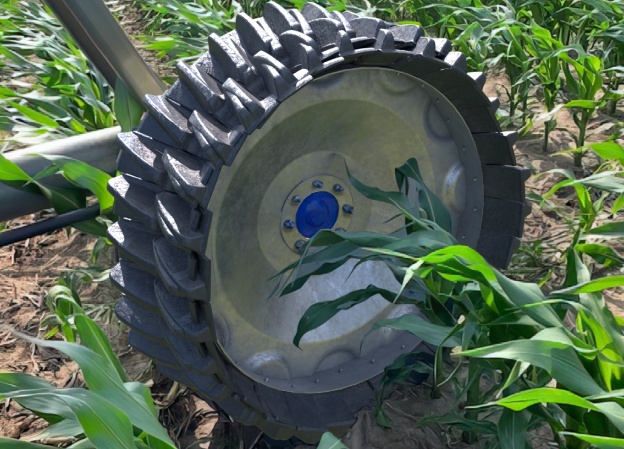 In farming, circular wheels create problems. Take the center-pivot irrigation process, which most farmers use for watering crops, as a prime example. The irrigation equipment rolls on wheels and those wheels dig trenches — often up to five feet deep — into the soil. As a result, machines can break and tires can flatten. It’s tough for farmers to get these broken machines out, and once they do, they have to throw the soil back into the trenches so they can grow crops there—adding up to a tremendous amount of effort and money.