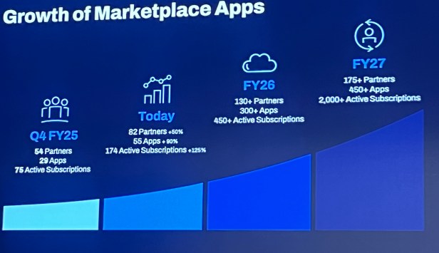 Workday says it’s had more partner demand than expected in the 10 months since launching this platform. About 60 applications and agents are already in the marketplace; 82 partners are building on the platform; and 100 are currently onboarding.